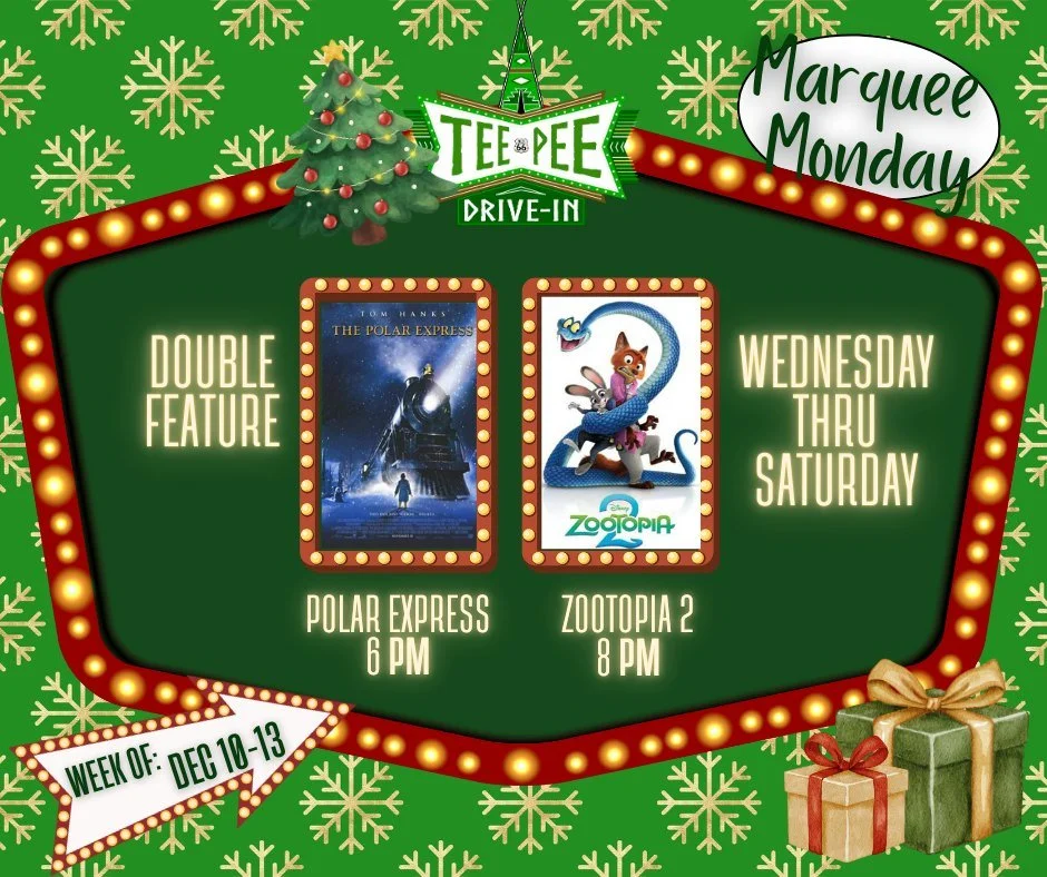 For the first time ever, the Teepee Drive-In will be open during the holiday season! Throughout November and December, weβll be showing a festive mix of holiday favorites and family-friendly films.