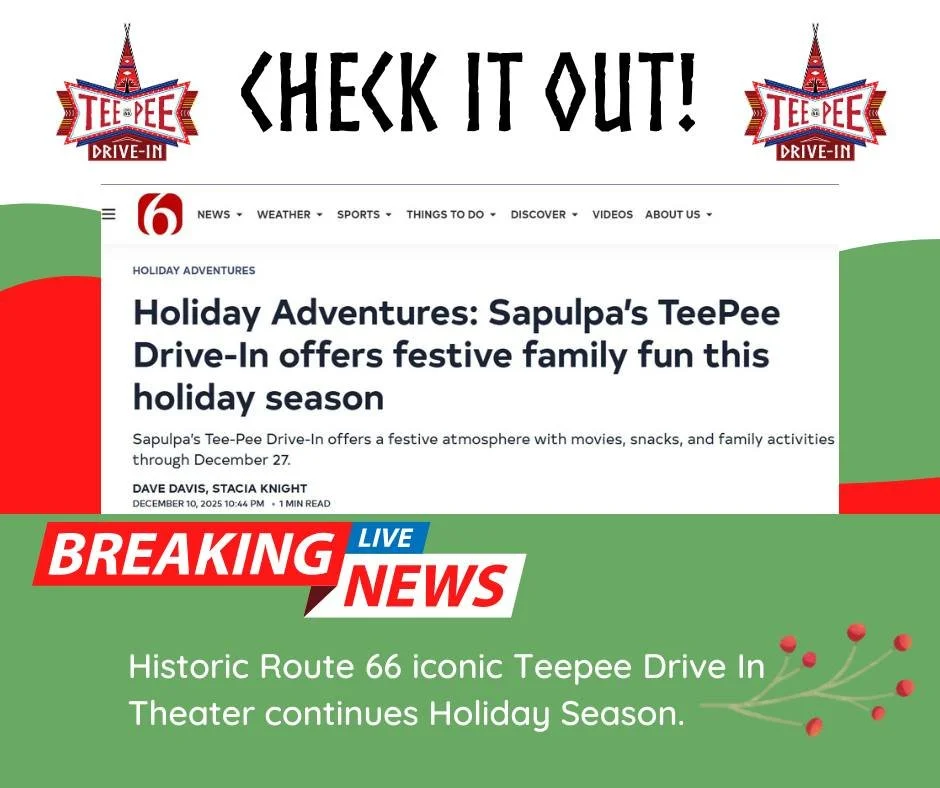 For single-feature evenings, the movie begins at 7 PM. On double-feature nights, the first film starts at 6 PM, followed by the second at 8 PM. Whether you're sipping hot cocoa or bundled up in blankets, come make magical memories under the stars at Sapulpaβs beloved drive-in.